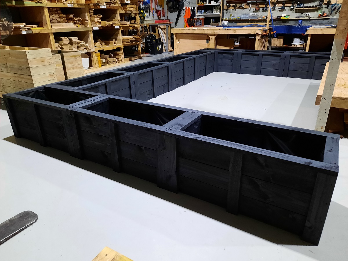 Made from sturdy 25mm thick plinth board, with external corners and mid-brace. Open bottomed. Treated pine tuffcoat screws, no crappy nails used. Starting at $125 per meter unpainted, $145 per meter painted. Discounts for large orders. 1 meter long, 50cm wide, 47 cm high.